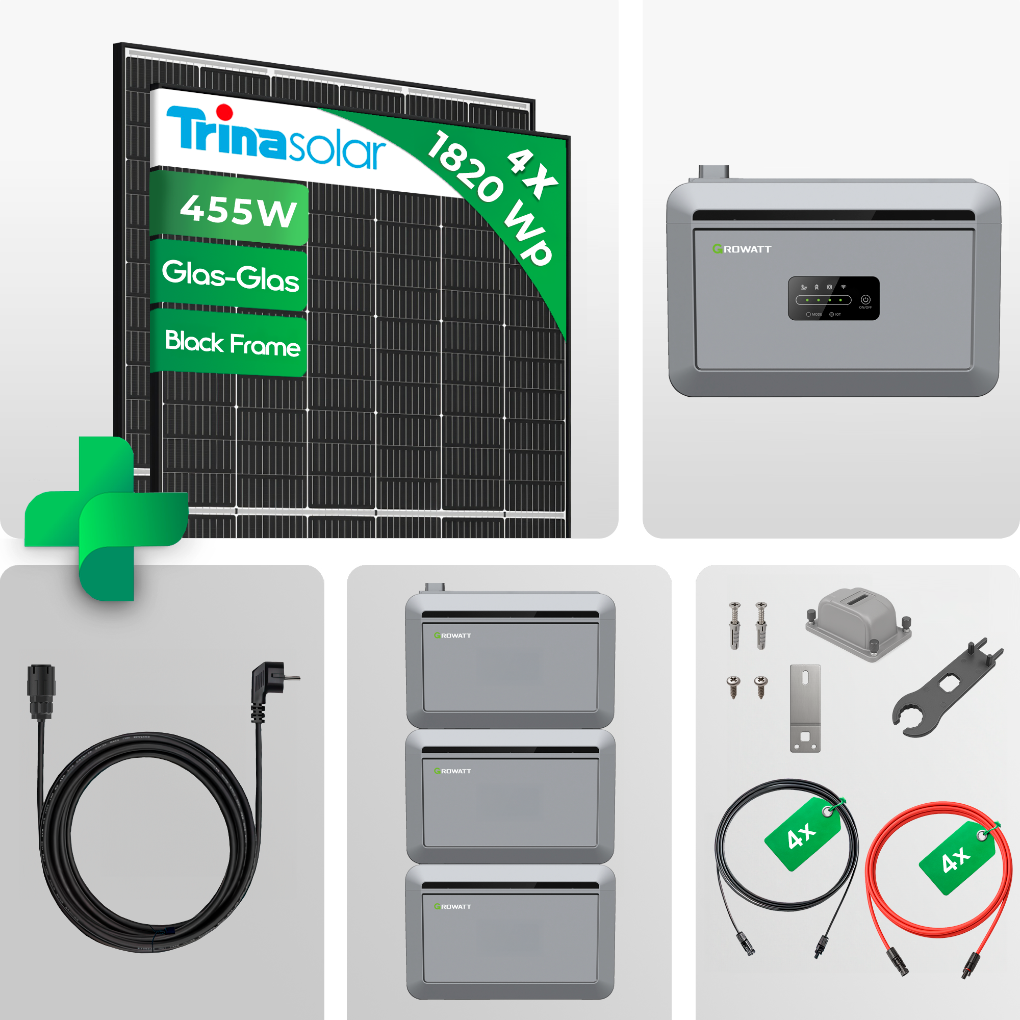 1820wp Balkonkraftwerk SET | Trina Vertex S+ 455W Glas-Glas | Growatt NEXA 2000 Speicher | All-in-One