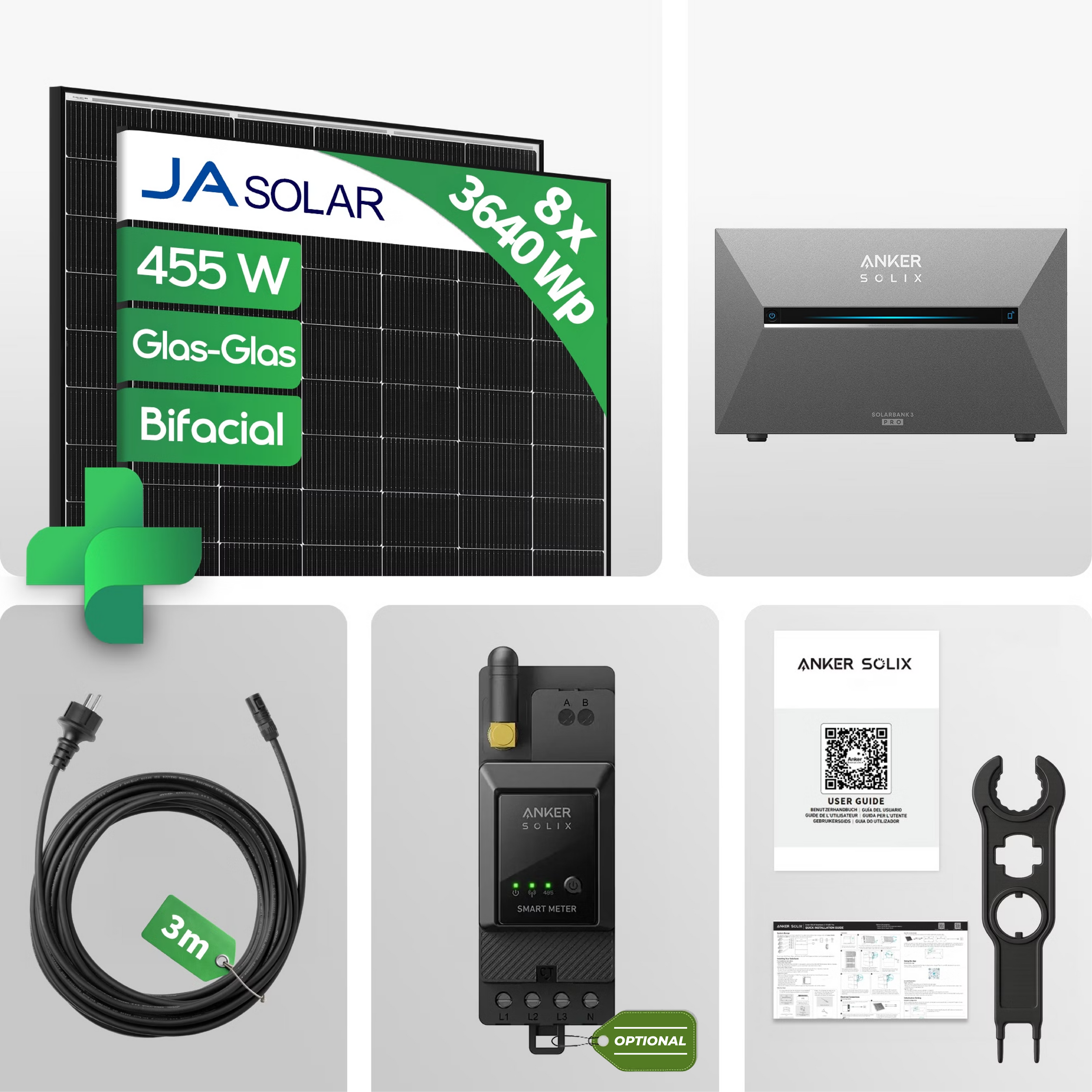 Erleben Sie geballte Solar-Power mit unserem Premium-Komplettset bestehend aus dem Anker SOLIX Solarbank 3 Pro Stromspeicher und acht leistungsstarken JA Solar 455W Bifacial Solarmodulen. Zusammen ergeben sie eine Gesamtleistung von 3640Wp - ideal für maximale Eigenversorgung mit Sonnenstrom.