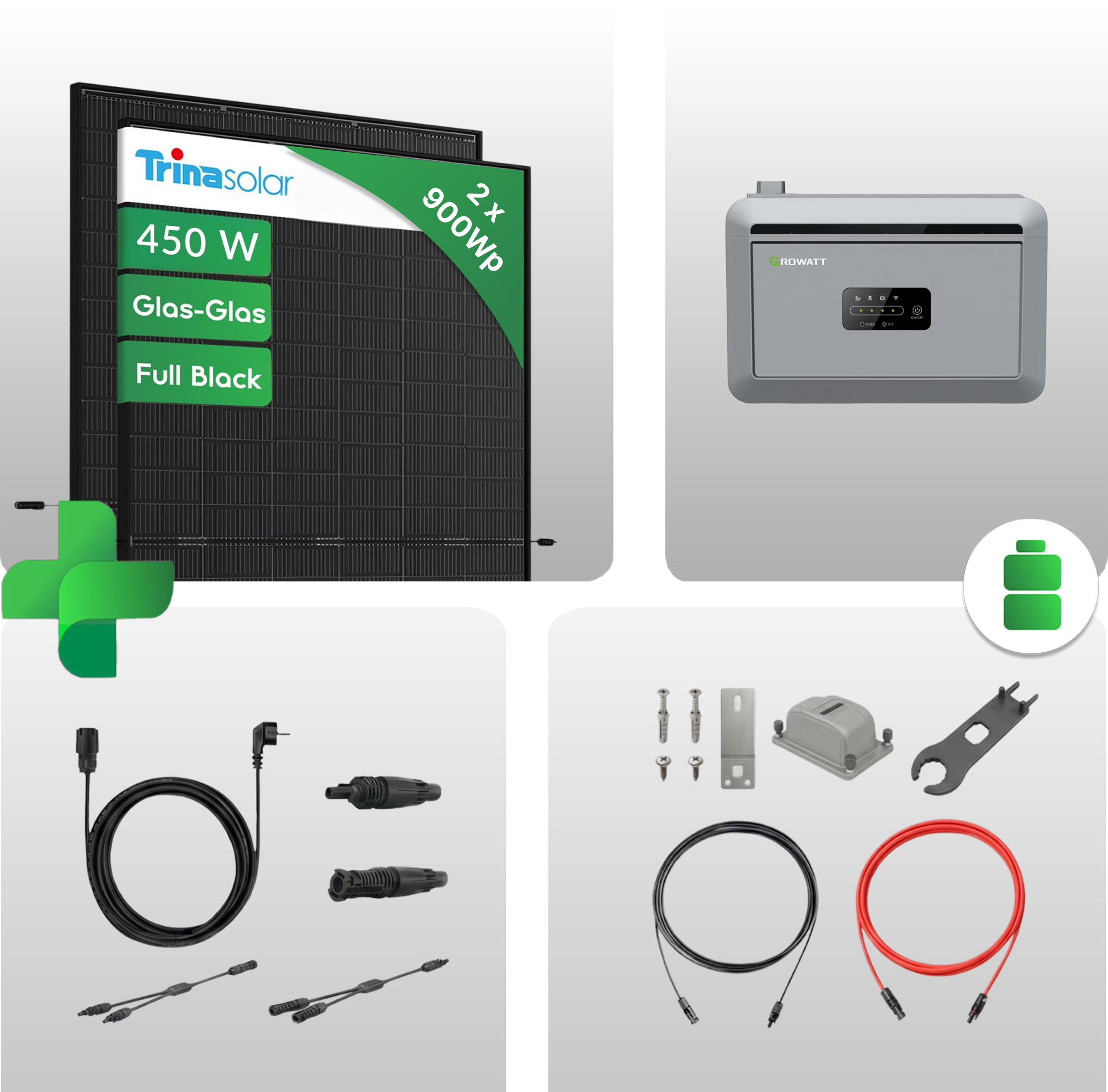 900wp Balkonkraftwerk SET | Trina Vertex S+ 450W Glas-Glas | Growatt NEXA 2000 Speicher | All-in-One