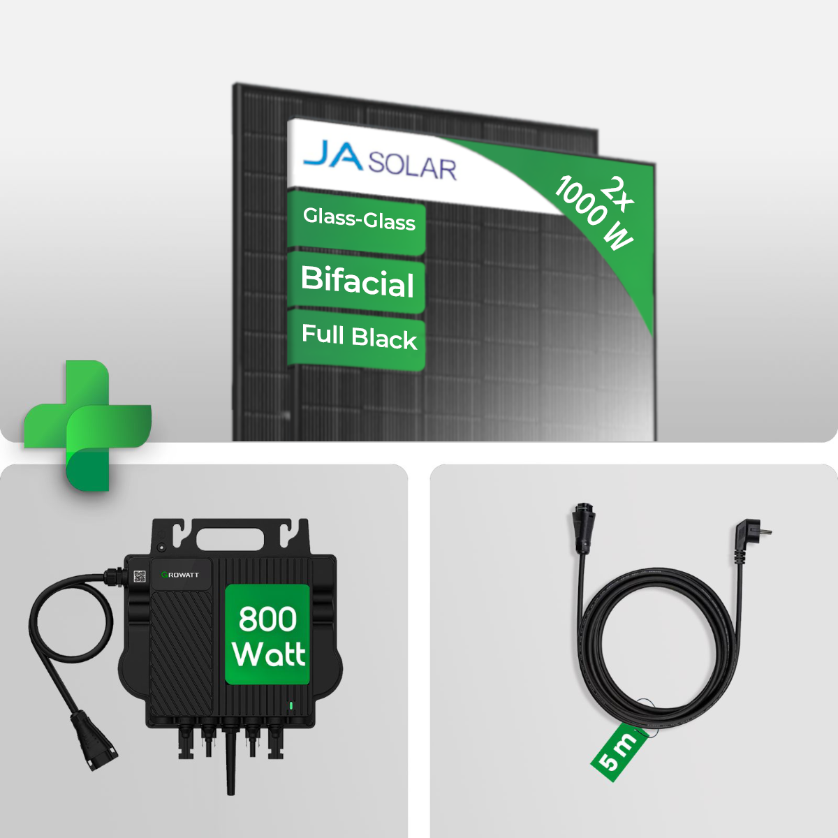 1000wp Balkonkraftwerk SET | JA Solar 500W Glas-Glas Bifacial Full Black | Neo 800 Watt Mikrowechselrichter