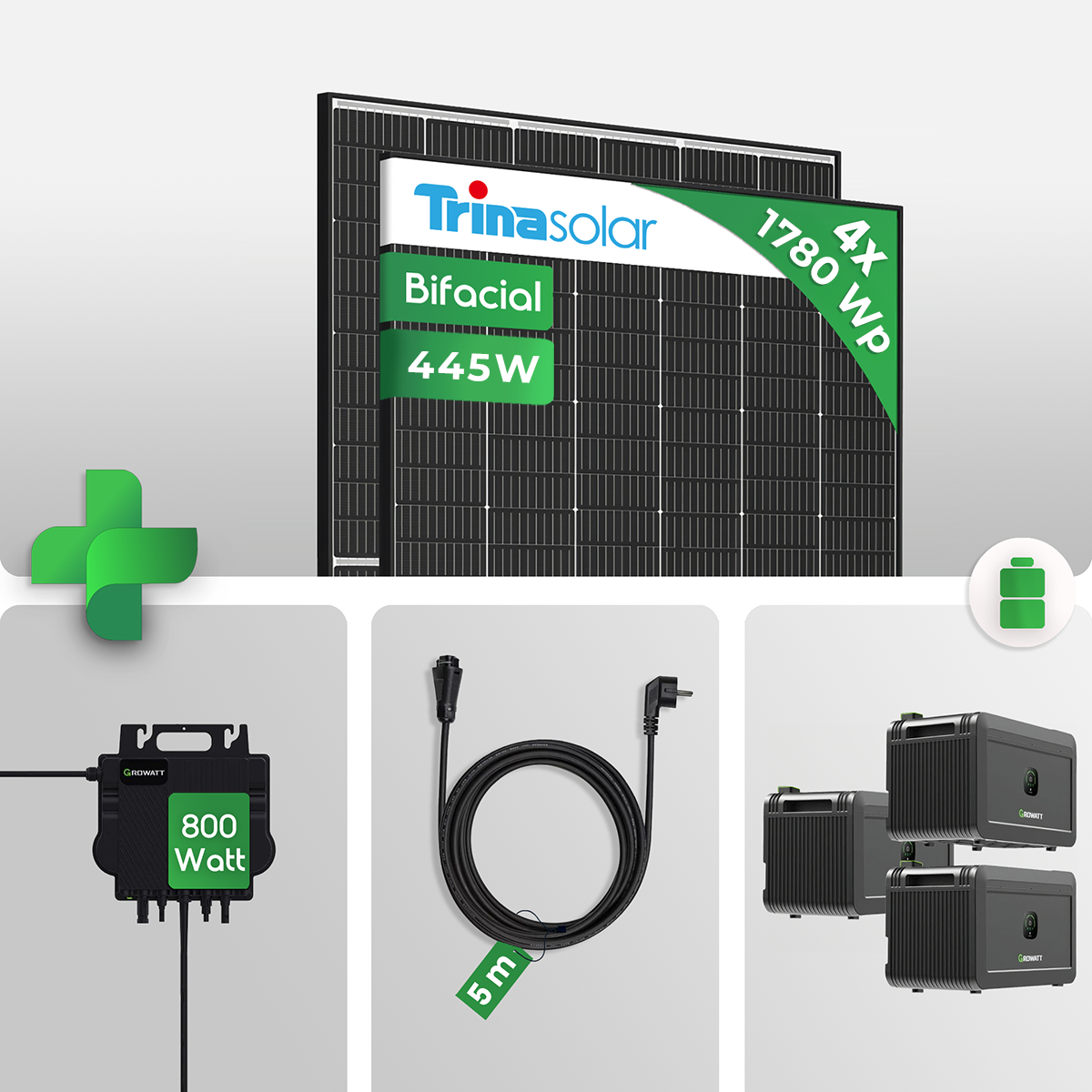 1780 wp Growatt NEO800M-X Balkonkraftwerk 600/800 Watt | + 6kWh Speicher | Trina Vertex S+ 445W Bifacial