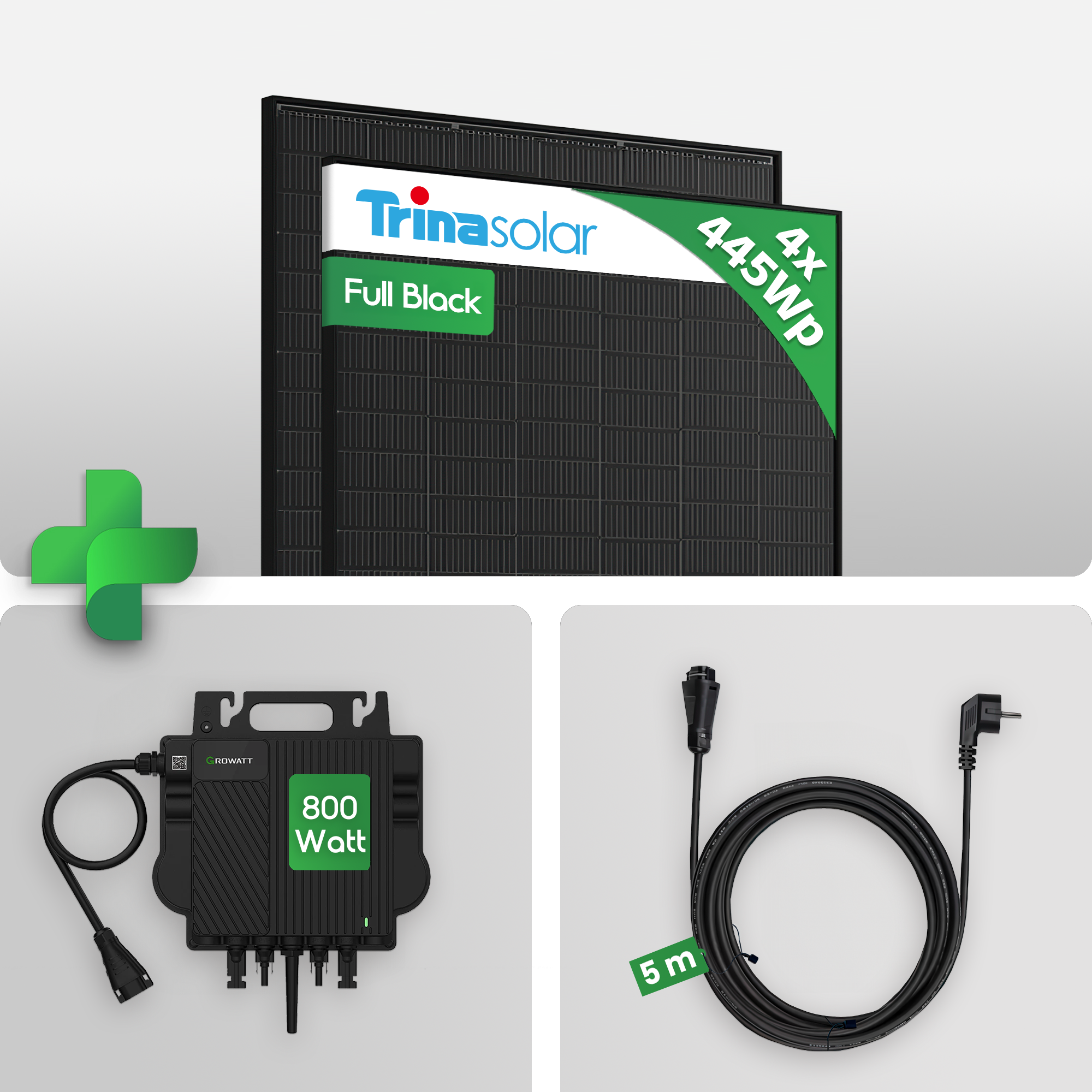 1780wp Balkonkraftwerk SET | Trina Vertex S+ 445W Glas-Glas Full Black | Neo 600/800 Watt Mikrowechselrichter