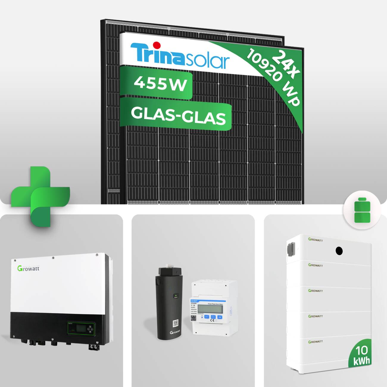 10.92 kWp PV-Komplettpaket mit 10 kWh Batterie inkl. ARK-Kabel | Trina 455W Black Frame TSM-455-NEG9R.28
