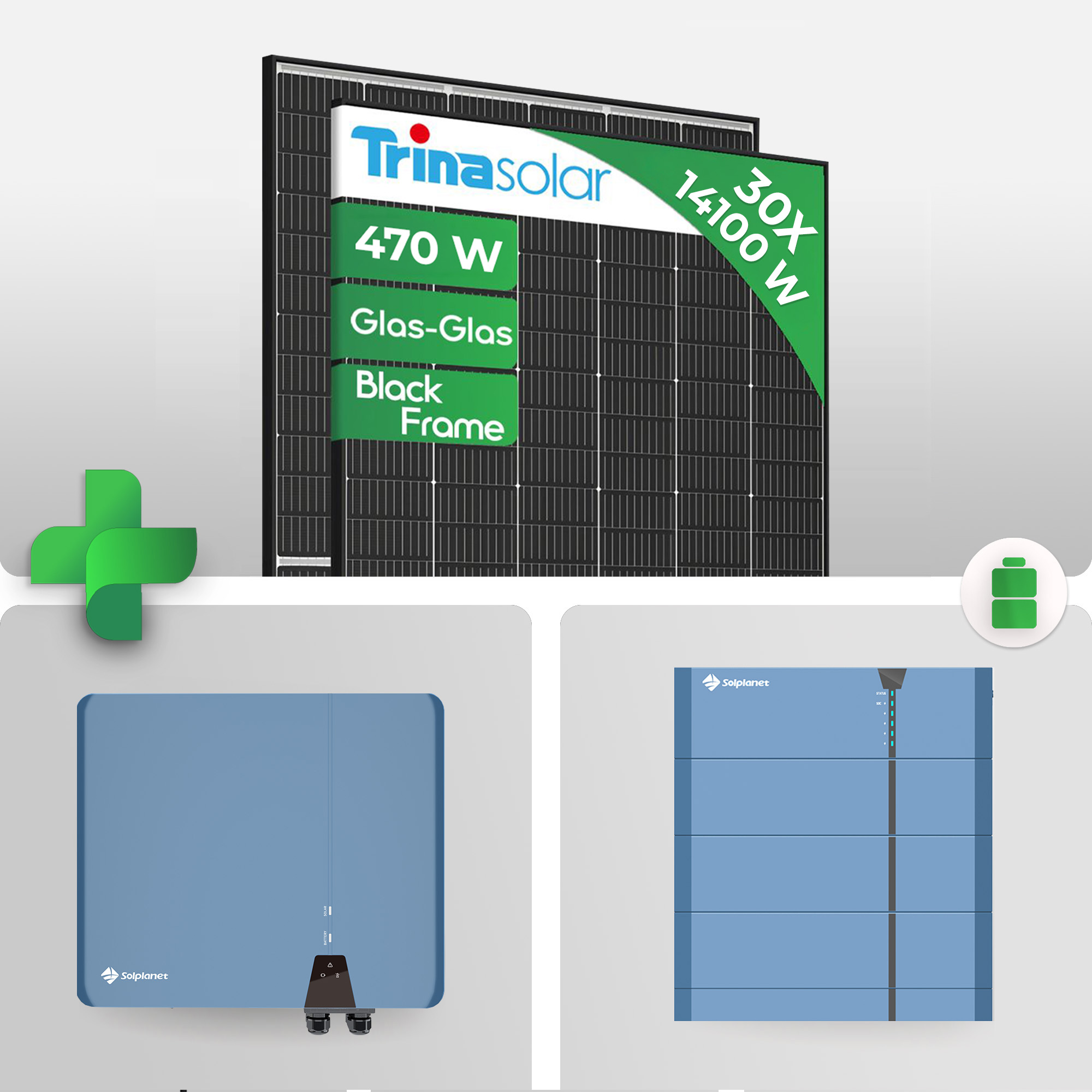 14.10 kWp PV-Komplettpaket mit 10 kWh Batterie | Trina Vertex S+ 470W Glas Glas