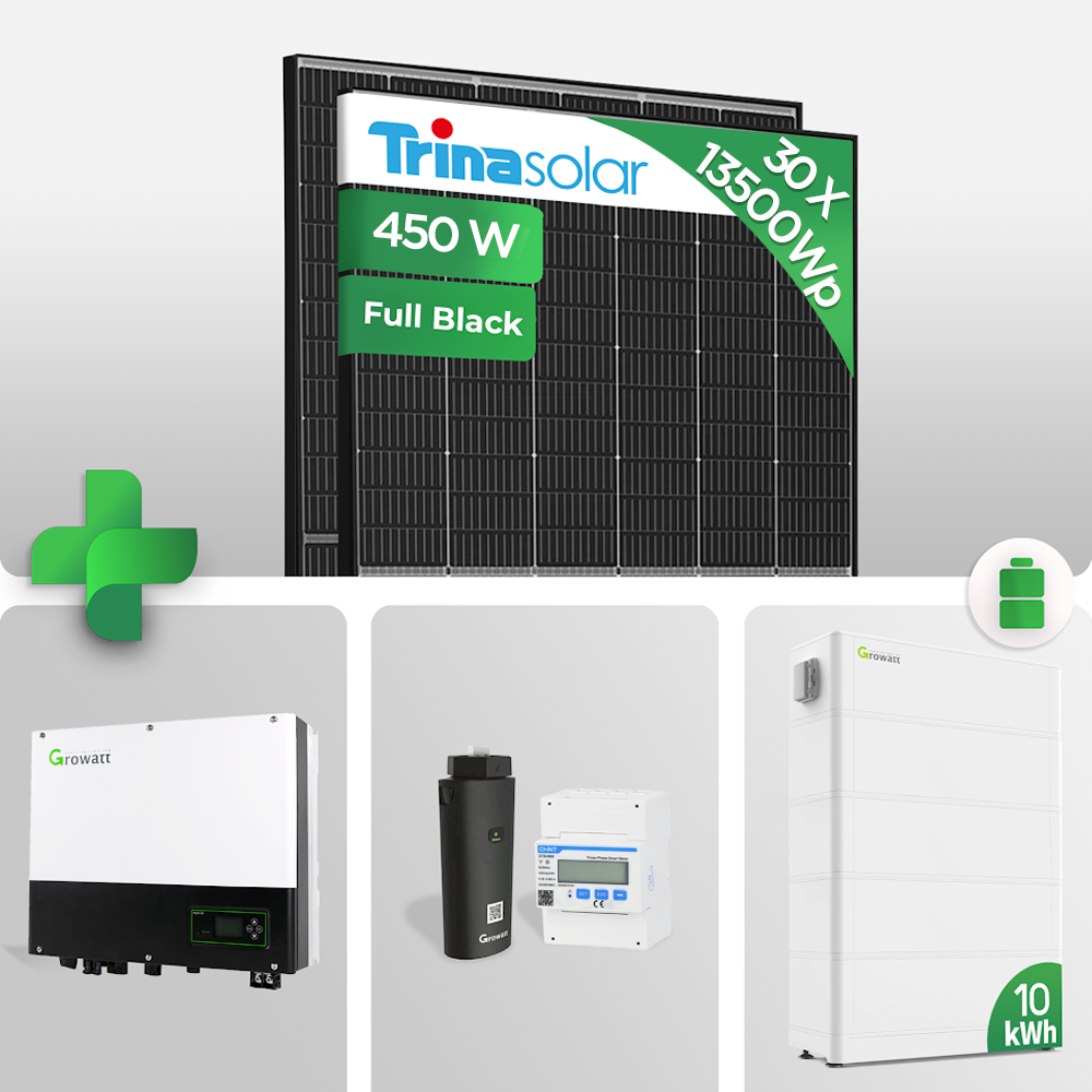 13500wp PV-Komplettpaket mit 10 kWh Batterie | Trina Vertex S+ Full Black 450W Glas Glas