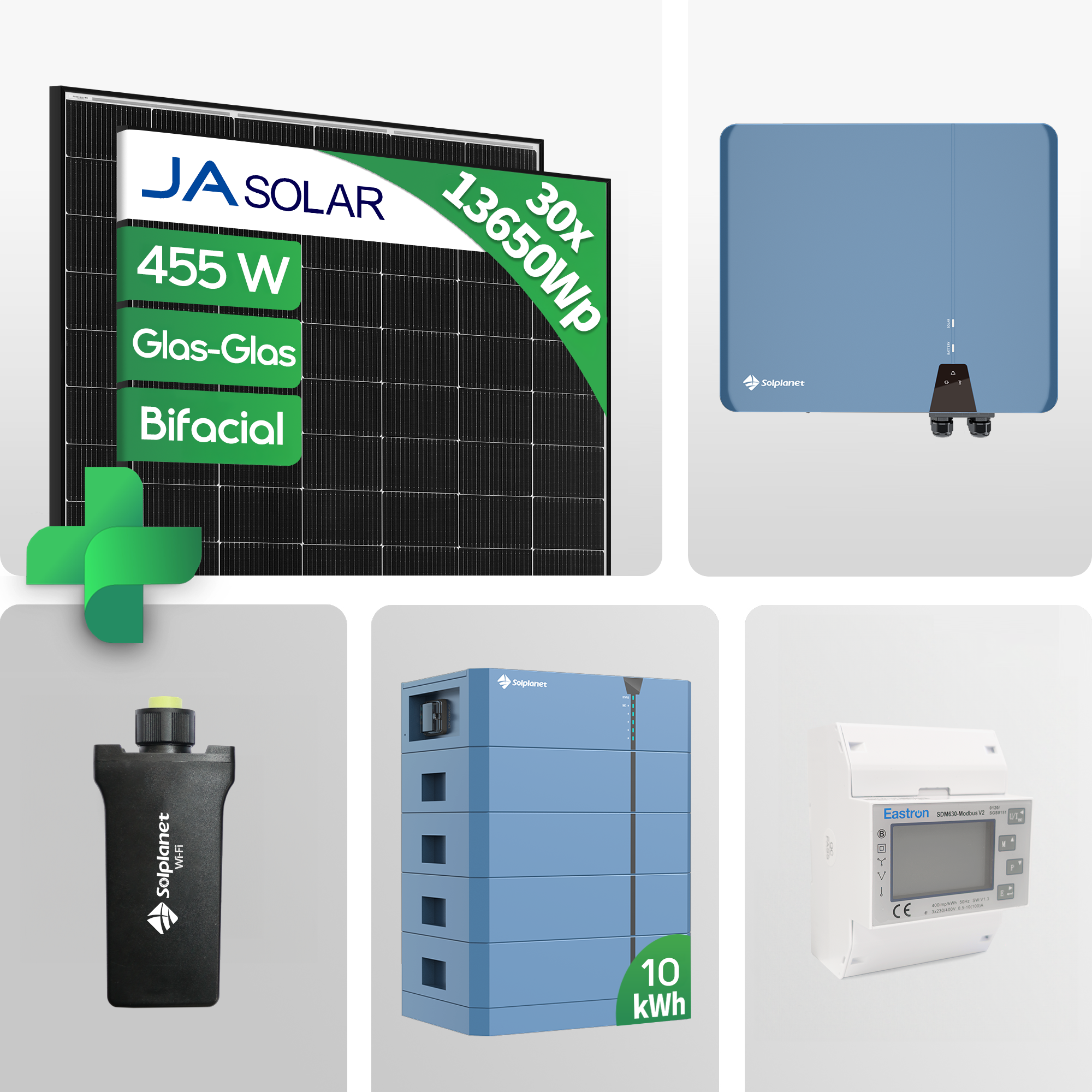 13,65 kWp PV-Komplettanlage mit 10 kWh Speicher und 455W JA Solarmodulen