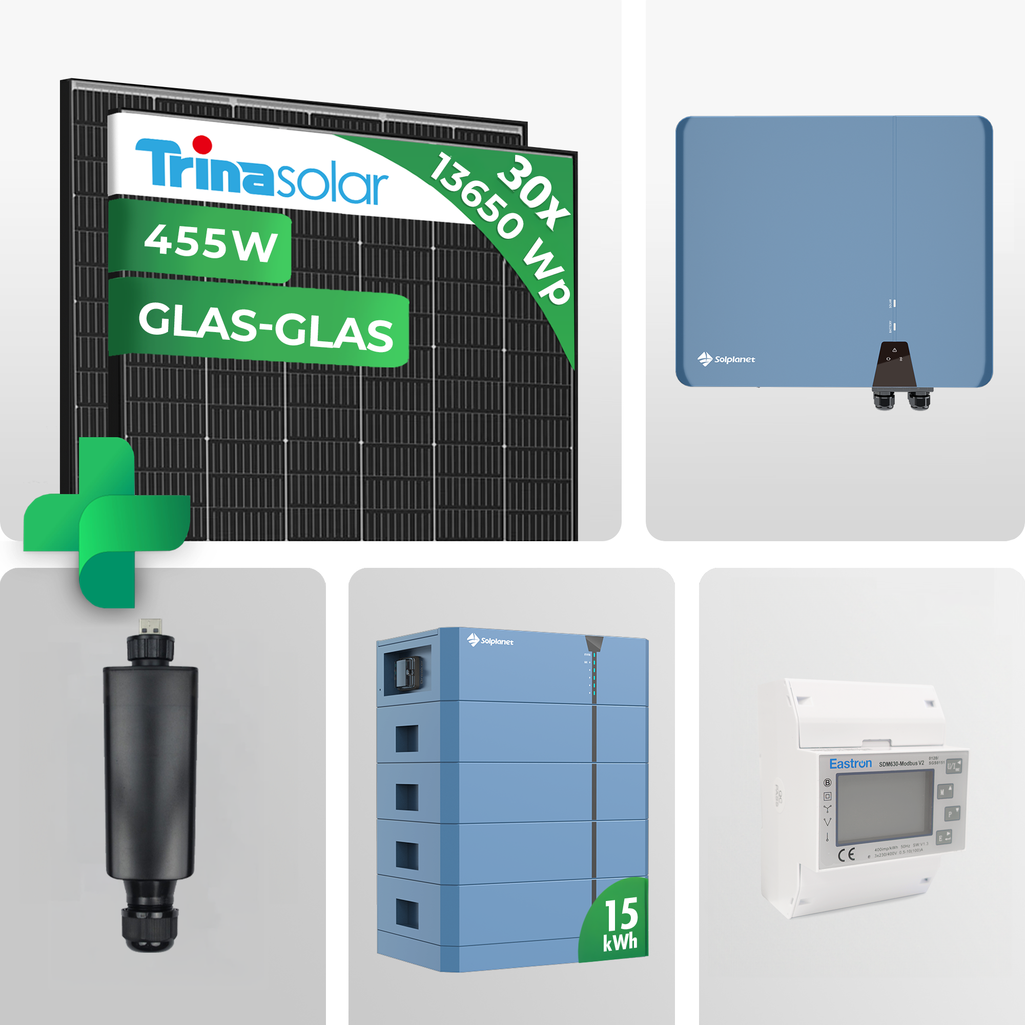 13,65 kWp PV-Komplettanlage mit 15 kWh Speicher und 455W Trina Vertex S+ Solarmodulen