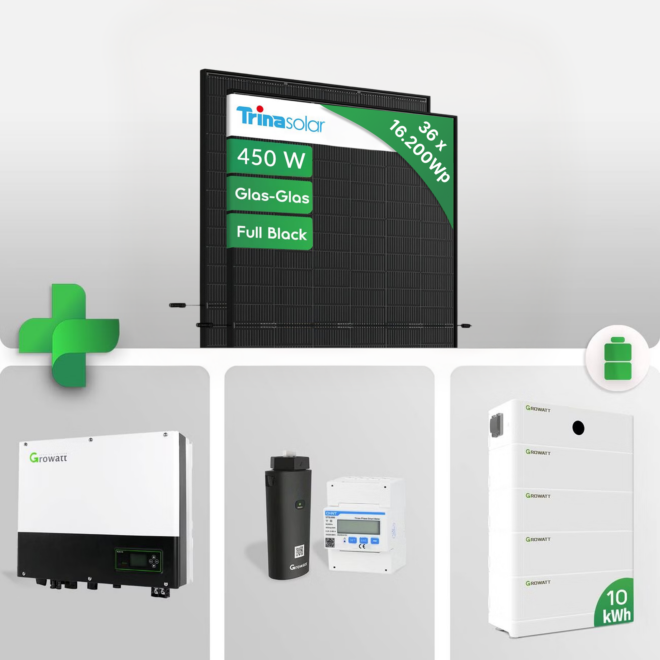 16.2 kW PV-Komplettanlage mit 10 kWh Speicher inkl. ARK-Kabel und Trina Vertex S+ 450W Modulen