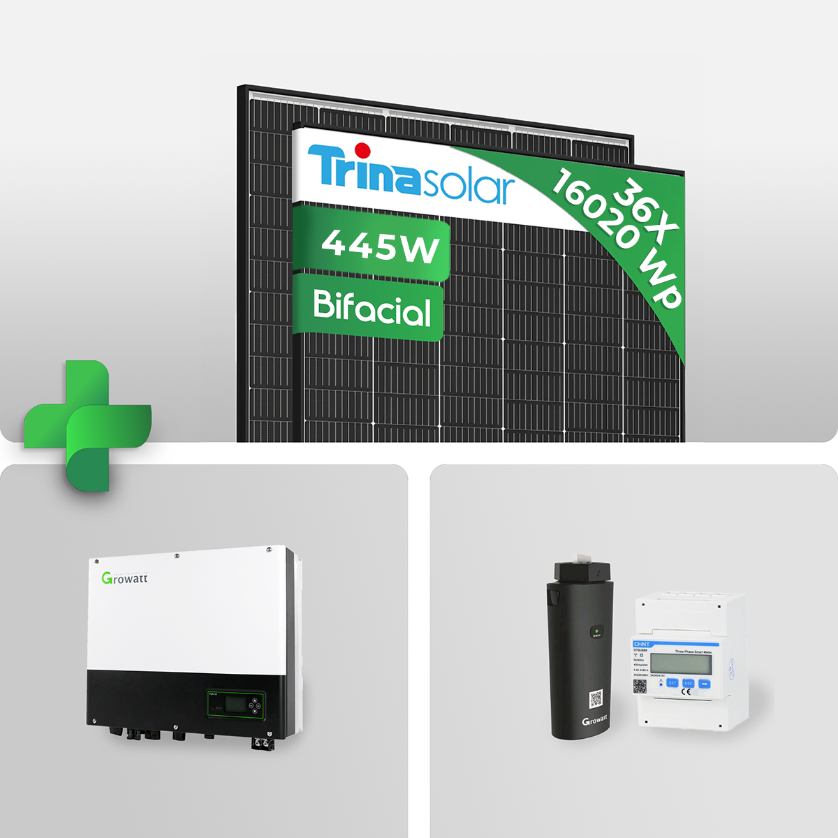 Die 16.02kW PV-Komplettanlage mit Trina Solar Vertex S+ 445W und Growatt SPH 10000TL3 BH UP bietet maximale Effizienz, Notstromfunktion und Energieautarkie. Ideal zur Reduzierung von Energiekosten und für eine nachhaltige Stromversorgung.
