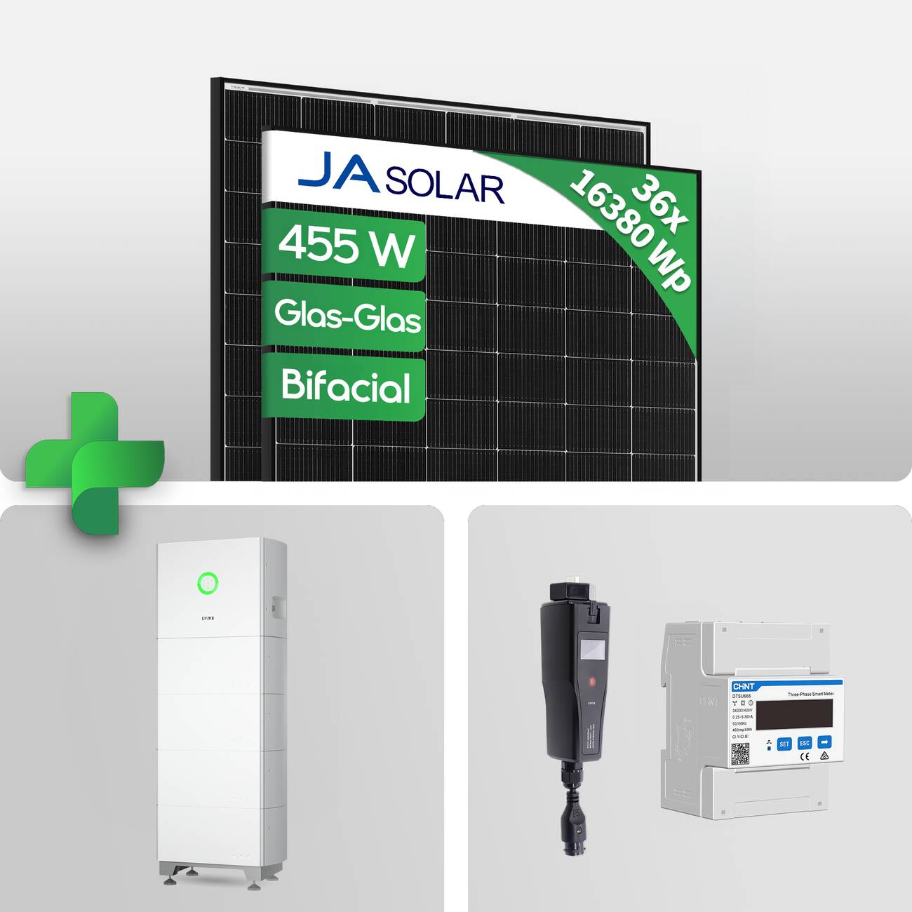 16.38 kWp PV-Komplettpaket mit 10 kWh Batterie | JA Solar 455W Glas-Glas Bifacial Black Frame