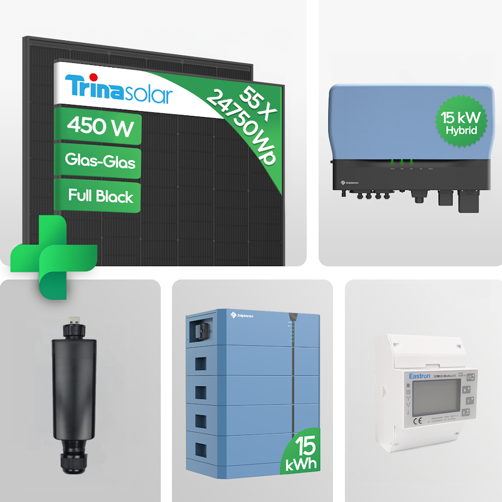 24,75 kWp PV-Komplettpaket mit 15 kWh Batterie | Trina 450W Full Black Glas-Glas TSM-450-NEG9R.25