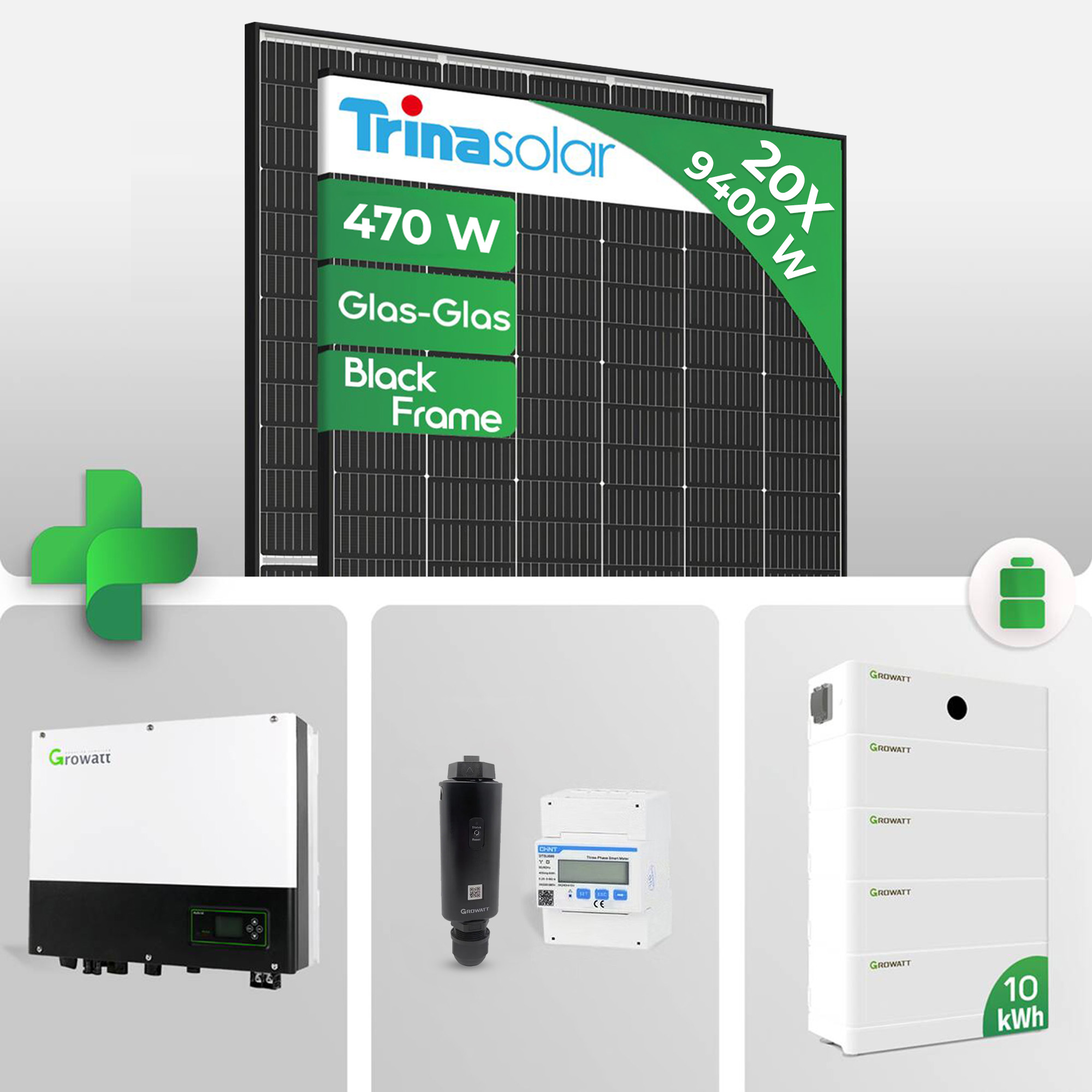 9400wp PV-Komplettpaket mit 10 kWh Batterie inkl. ARK-Kabel | Trina Vertex S+ 470W Glas Glas