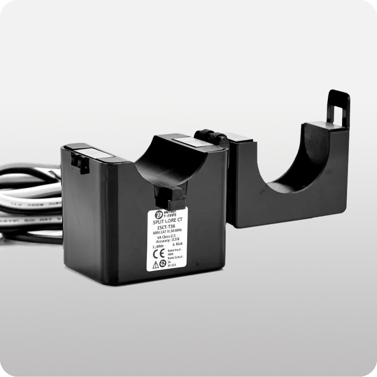 Die Stromwandler der Serie Solplanet Eastron ESCT-T mit geteiltem Kern sind für eine schnelle und einfache Installation ausgelegt. Das Design mit geteiltem Kern ermöglicht berührungslose Strommessungen durch Magnetfeldinduktion, ohne dass der Primärdraht für die Installation des Stromwandlers vom Netz genommen und getrennt werden muss. Diese Methode ermöglicht eine sicherere, einfache und mobile Strommessung. Ein interner Präzisionslastwiderstand über der Sekundärwicklung des Stromwandlers sorgt für einen sicheren Niederspannungsausgang und ermöglicht ein sicheres Öffnen des Sekundärkreises.